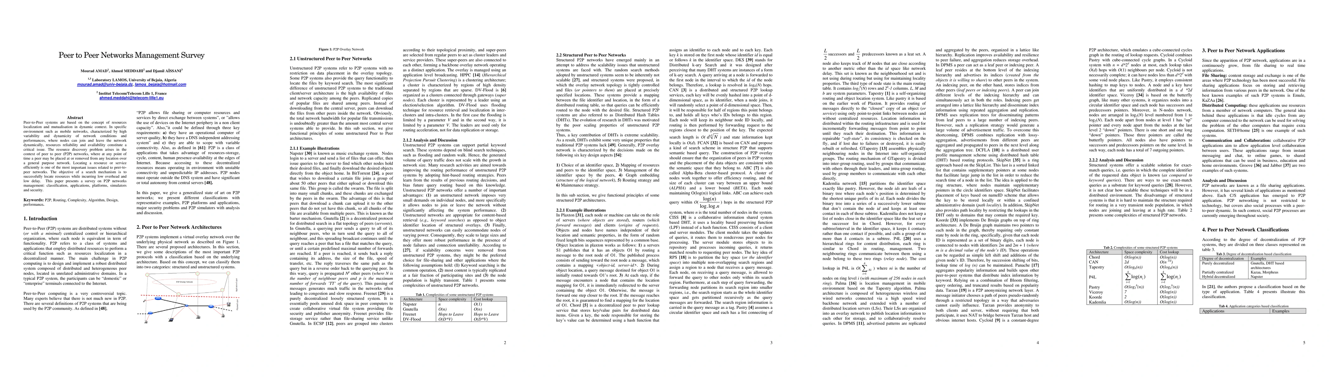 Peer-to-Peer systems are based on the concept of resources localization and mutualisation in dynamic context. In specific environment such as mobile networks, characterized by high variability and dynamicity of network conditions and performances, where nodes can join and leave the network dynamically, resources reliability and availability constitute a critical issue. The resource discovery problem arises in the context of peer to peer (P2P) networks, where at any point of time a peer may be placed at or removed from any location over a general purpose network. Locating a resource or service efficiently is one of the most important issues related to peer-to-peer networks. The objective of a search mechanism is to successfully locate resources while incurring low overhead and low delay. This paper presents a survey on P2P networks management: classification, applications, platforms, simulators and security.
