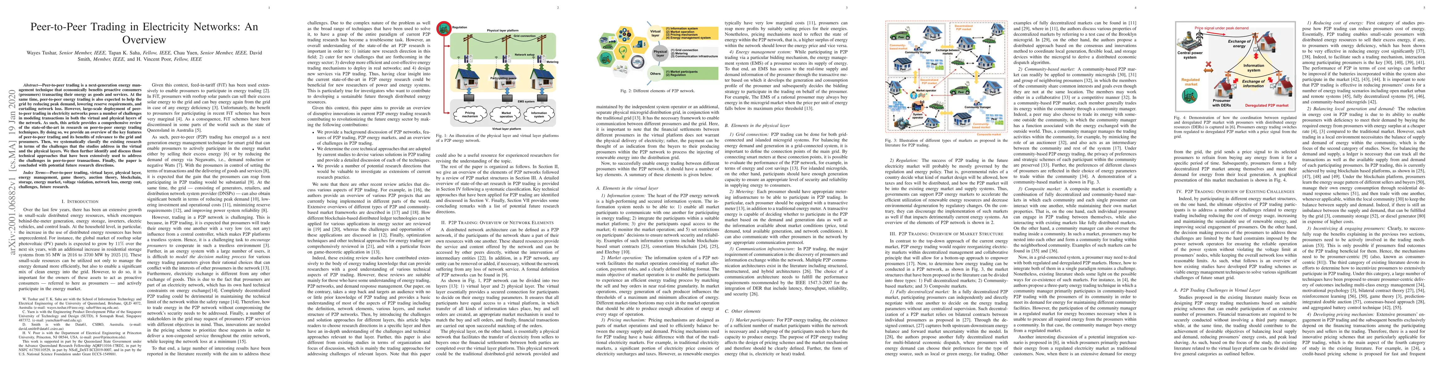 This paper reviews peer-to-peer trading in electricity networks, highlighting its benefits for prosumers and grid efficiency, and categorizes research addressing challenges in transaction modeling. It identifies technical approaches used to tackle these challenges and suggests future research directions.