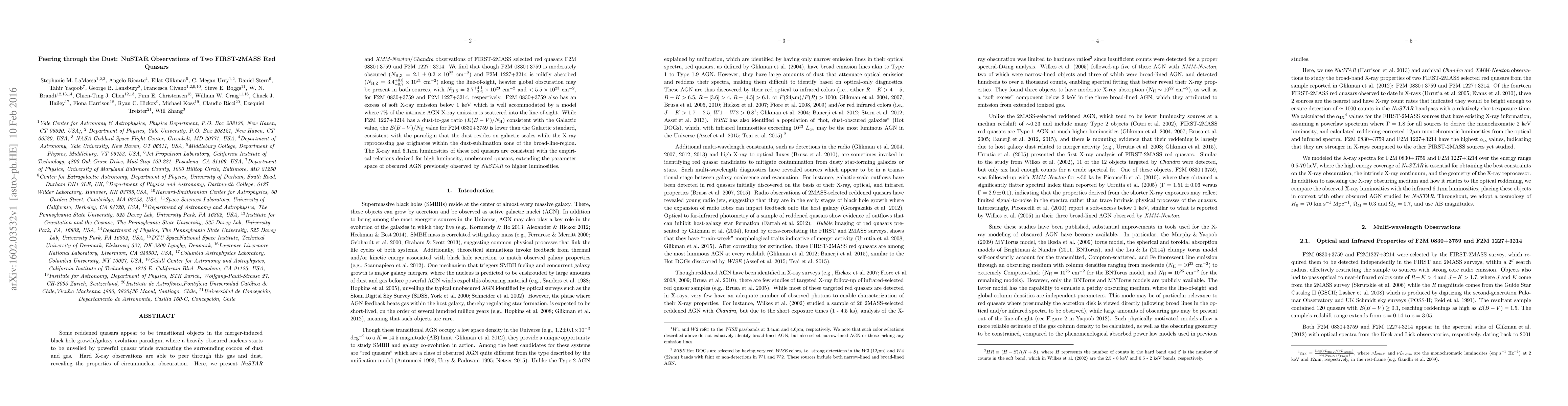 This paper uses NuSTAR observations to study two red quasars, F2M 0830+3759 and F2M 1227+3214, finding moderate and mild line-of-sight absorption respectively, but suggesting heavier global obscuration in both. The study reveals different dust-to-gas ratios and extends the understanding of high-luminosity, obscured active galactic nuclei.