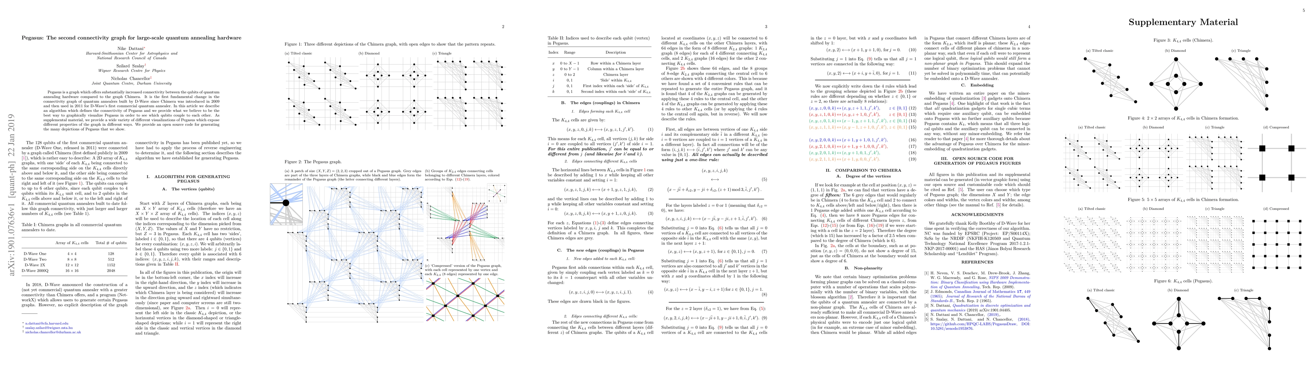 Pegasus enhances qubit connectivity in quantum annealing hardware, surpassing the Chimera graph. This paper introduces an algorithm defining Pegasus's connectivity and provides various visualizations to illustrate qubit interactions, accompanied by open-source code.