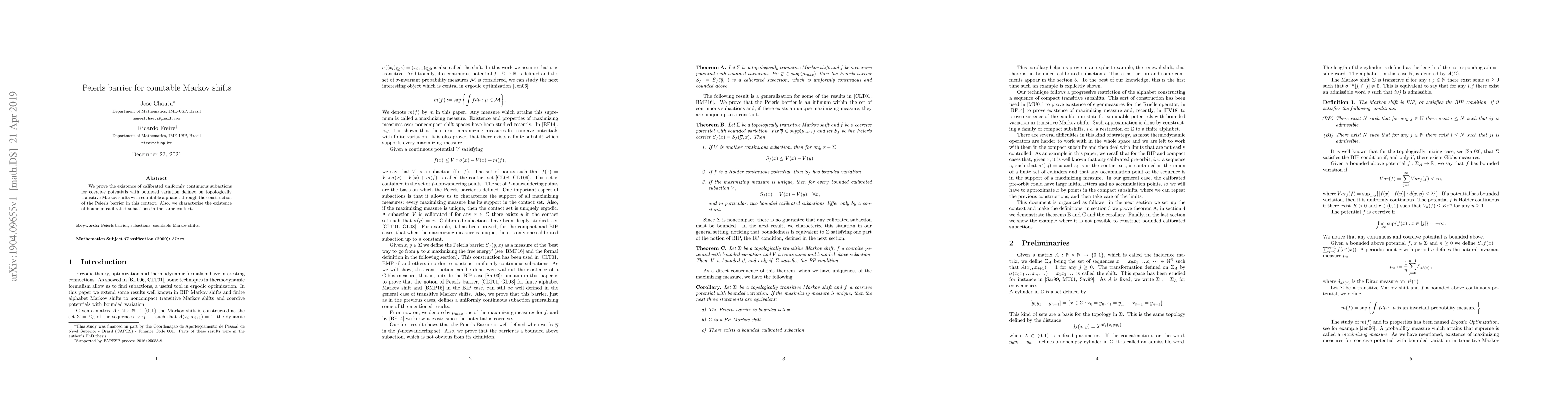 We prove the existence of calibrated uniformly continuous subactions for coercive potentials with bounded variation defined on topologically transitive Markov shifts with countable alphabet through the construction of the Peierls barrier in this context. Also, we characterize the existence of bounded calibrated subactions in the same context.