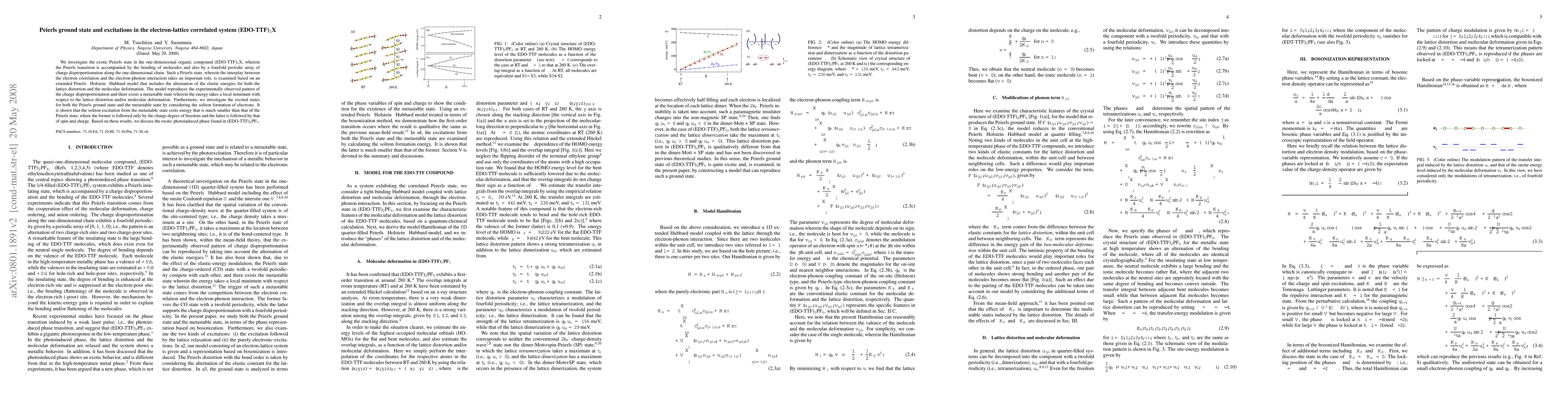 This paper investigates the Peierls state in the organic compound (EDO-TTF)_{2}X, revealing a fourfold charge disproportionation and molecular bending, using an extended Peierls-Holstein-Hubbard model. It finds a metastable state with a lower energy cost for soliton excitation compared to the Peierls state, discussing the implications for photoinduced phases in (EDO-TTF)_{2}PF_{6}.