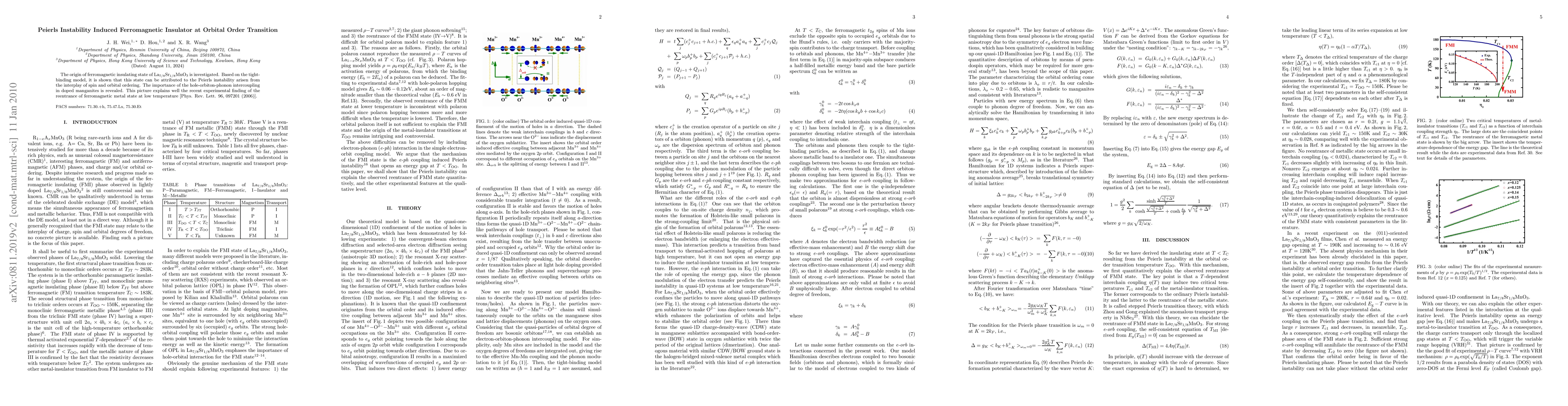 This paper investigates the origin of the ferromagnetic insulating state in La$_{7/8}$Sr$_{1/8}$MnO$_3$ using a tight-binding model, attributing it to Peierls instability from spin-orbital coupling. It highlights the significance of hole-orbiton-phonon interactions in doped manganites, explaining the reentrance of ferromagnetic metal state at low temperatures.
