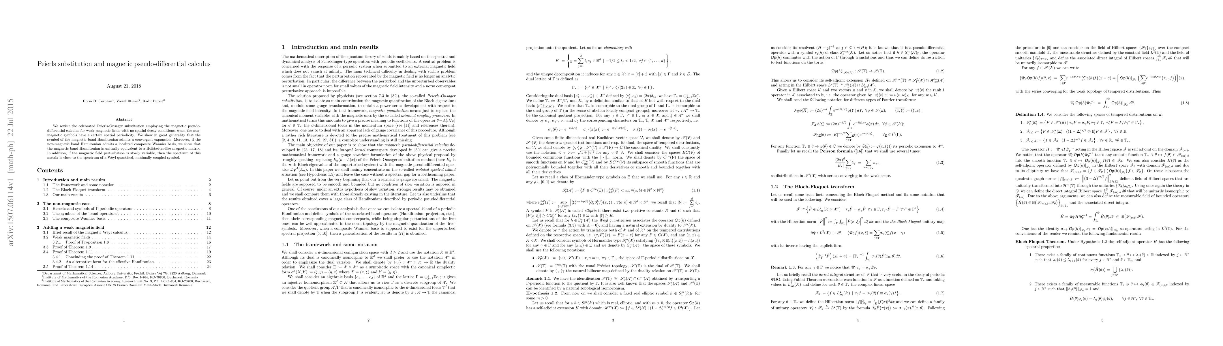 This paper explores the Peierls-Onsager substitution using magnetic pseudo-differential calculus for weak magnetic fields, demonstrating a convergent expansion for the magnetic band Hamiltonian symbol. It also shows unitarily equivalence to a Hofstadter-like magnetic matrix when a localized composite Wannier basis exists, and that the spectrum remains close to a Weyl quantized symbol under slowly varying magnetic field perturbations.