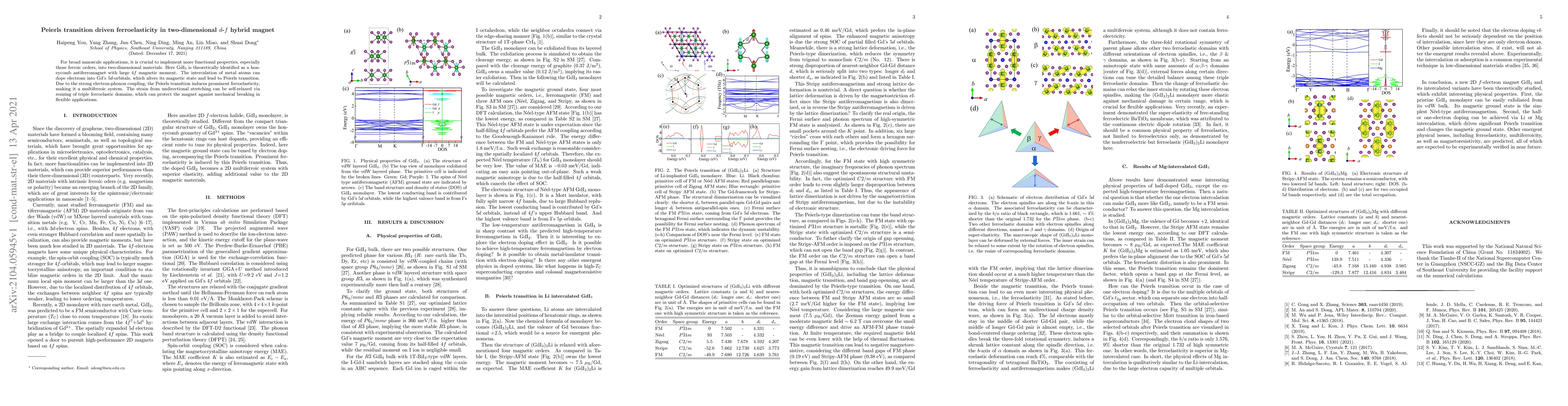 For broad nanoscale applications, it is crucial to implement more functional properties, especially those ferroic orders, into two-dimensional materials. Here GdI$_3$ is theoretically identified as a honeycomb antiferromagnet with large $4f$ magnetic moment. The intercalation of metal atoms can dope electrons into Gd's $5d$-orbitals, which alters its magnetic state and lead to Peierls transition. Due to the strong electron-phonon coupling, the Peierls transition induces prominent ferroelasticity, making it a multiferroic system. The strain from undirectional stretching can be self-relaxed via resizing of triple ferroelastic domains, which can protect the magnet aganist mechnical breaking in flexible applications.