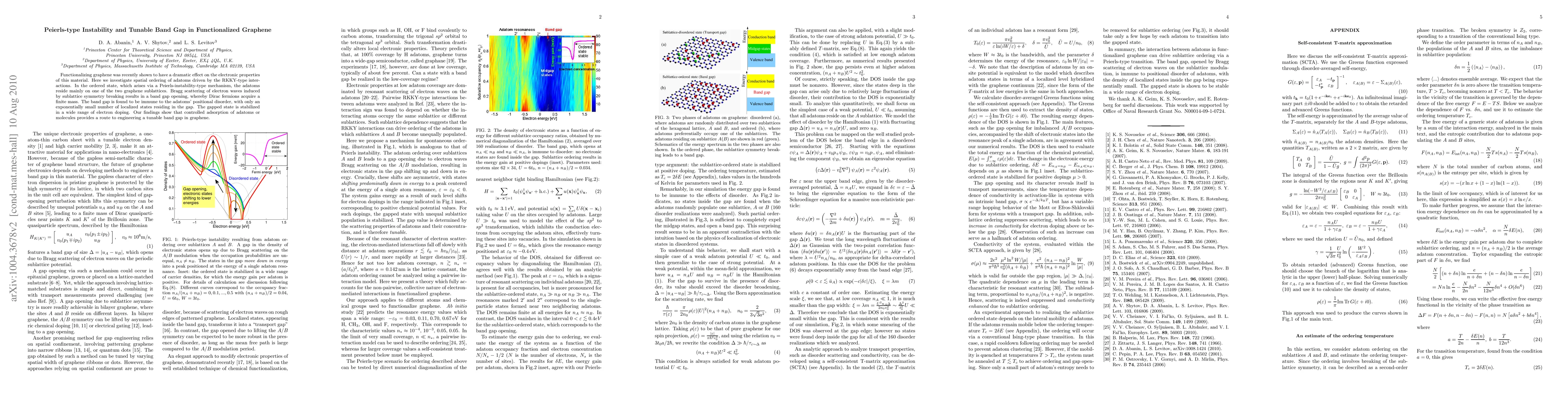 This paper explores how functionalizing graphene through adatom ordering via RKKY-type interactions leads to a Peierls-type instability, resulting in a tunable band gap. The band gap remains stable despite adatom disorder, offering a method to engineer graphene's electronic properties.