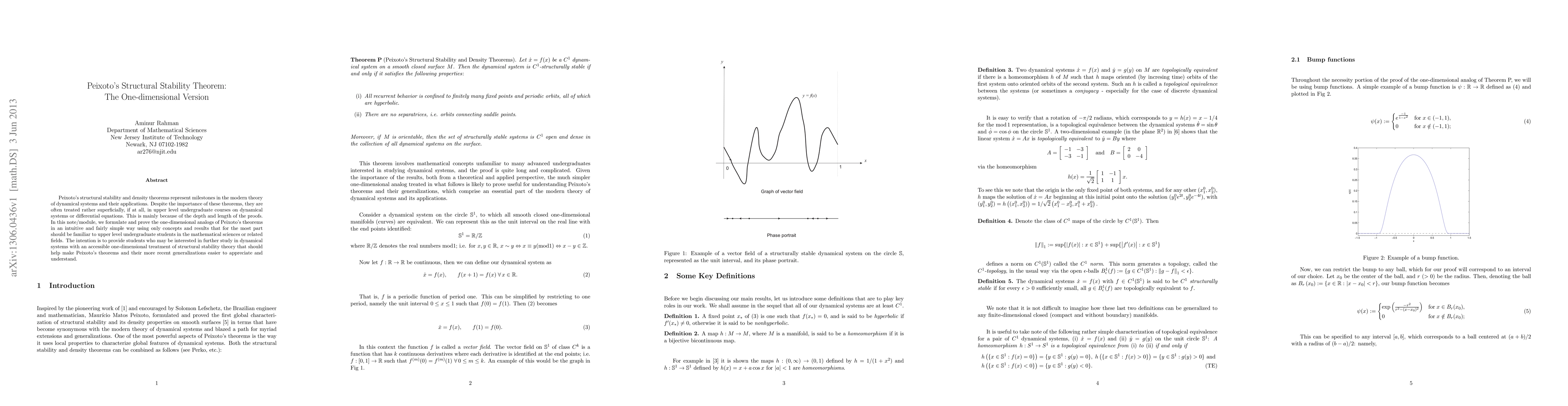 Peixoto's structural stability and density theorems represent milestones in the modern theory of dynamical systems and their applications. Despite the importance of these theorems, they are often treated rather superficially, if at all, in upper level undergraduate courses on dynamical systems or differential equations. This is mainly because of the depth and length of the proofs. In this note/module, we formulate and prove the one-dimensional analogs of Peixoto's theorems in an intuitive and fairly simple way using only concepts and results that for the most part should be familiar to upper level undergraduate students in the mathematical sciences or related fields. The intention is to provide students who may be interested in further study in dynamical systems with an accessible one-dimensional treatment of structural stability theory that should help make Peixoto's theorems and their more recent generalizations easier to appreciate and understand.