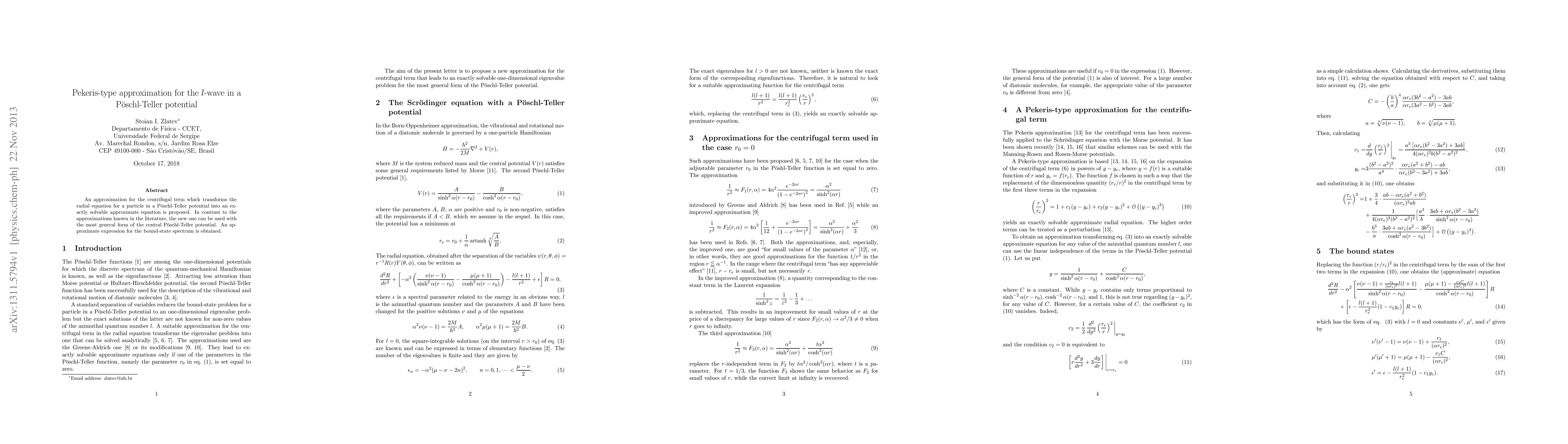A new approximation method for a centrifugal term is proposed, allowing for an exactly solvable equation in P"oschl-Teller potentials and yielding an approximate bound-state spectrum.