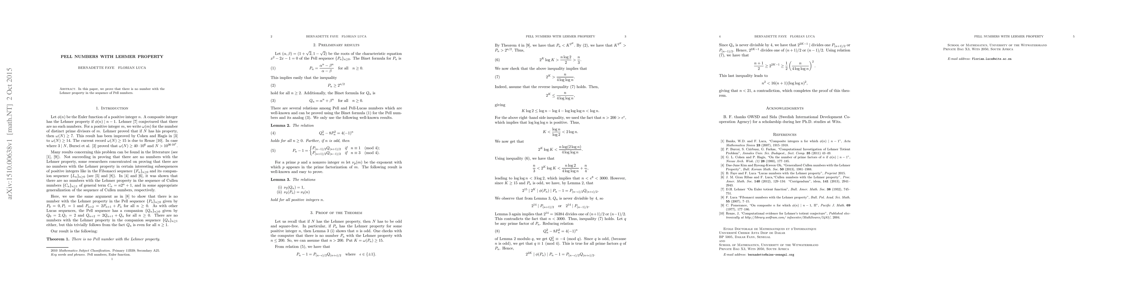 Summary: This research demonstrates that none of the Pell numbers possess the Lehmer property, concluding that the sequence of Pell numbers does not include any numbers with this characteristic.