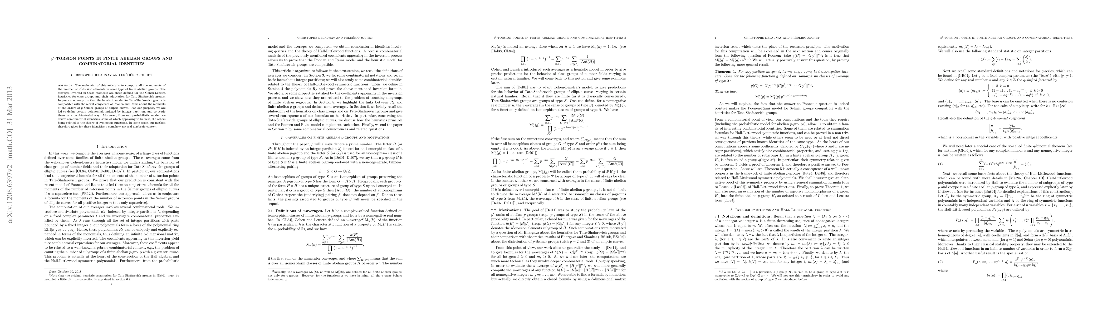 This paper computes moments of $p^\ell$-torsion elements in finite abelian groups, connecting the results to Cohen-Lenstra heuristics and Tate-Shafarevich groups. It also derives new combinatorial identities related to symmetric functions and provides a natural algebraic context for these identities.