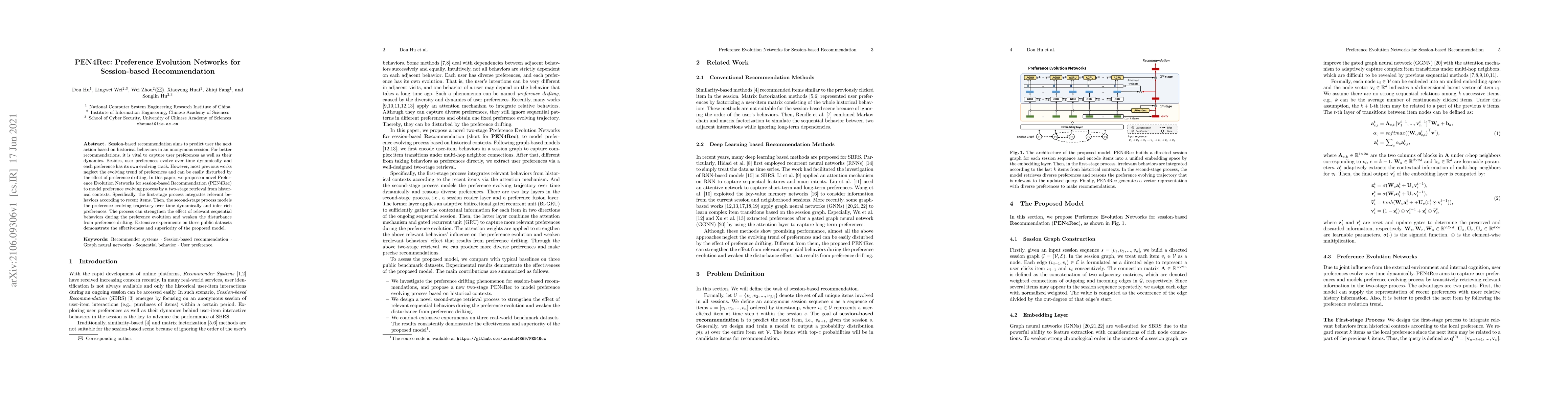 The PEN4Rec model proposes a two-stage retrieval approach to capture and model the evolving user preferences over time in session-based recommendation, enhancing recommendation accuracy by mitigating the effects of preference drifting. Experiments show its effectiveness and superiority over existing methods on multiple datasets.