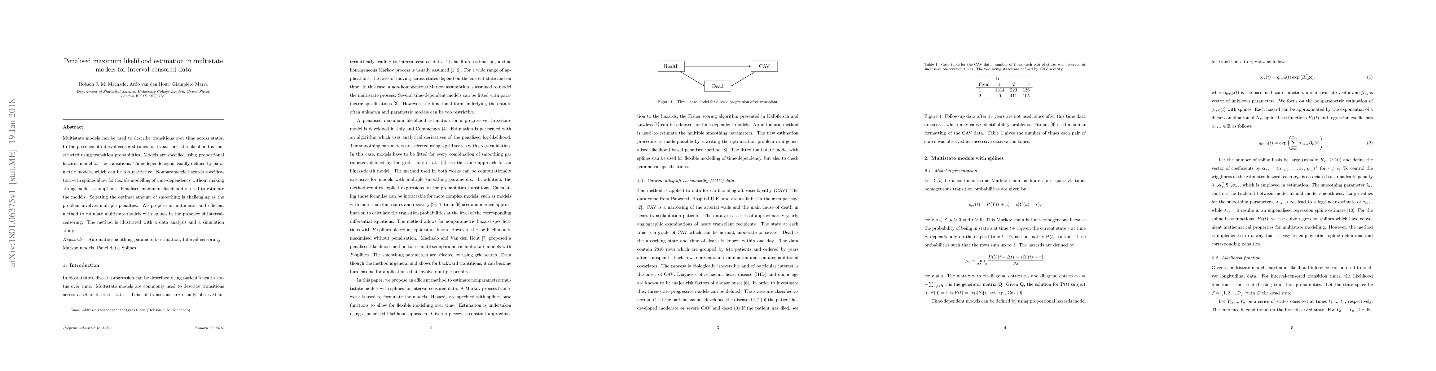 This paper proposes a method for estimating multistate models using penalised maximum likelihood with splines to handle interval-censored data, allowing for flexible time-dependent hazard modelling without strong parametric assumptions. An efficient automatic approach is developed for selecting the optimal smoothing level, demonstrated through data analysis and simulation studies.