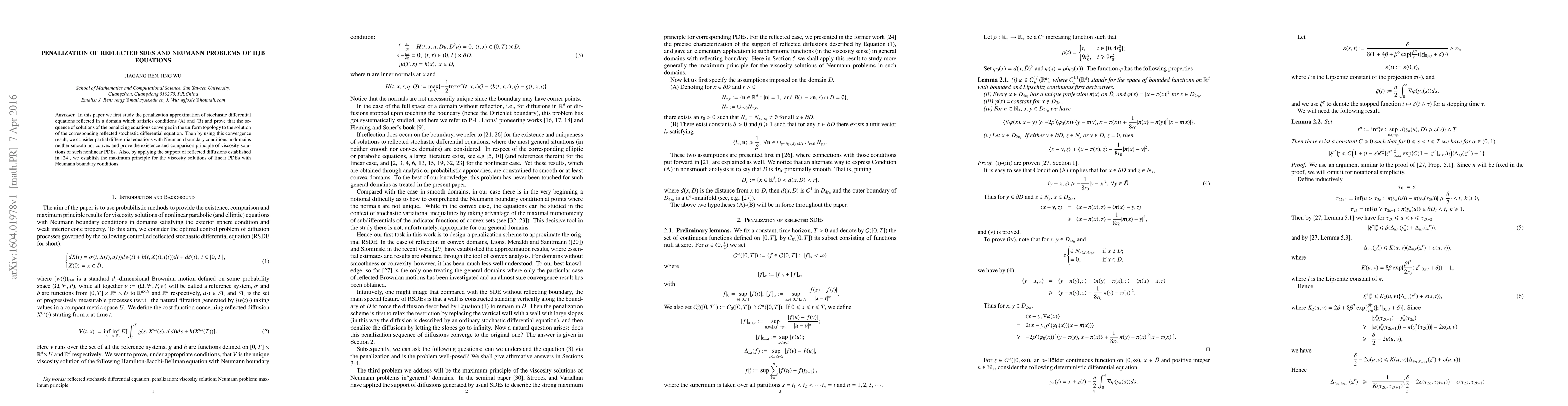 This paper proves the convergence of penalization approximations for reflected stochastic differential equations (SDEs) to the true solutions and extends these results to establish existence and comparison principles for viscosity solutions of nonlinear PDEs with Neumann boundary conditions in non-smooth domains. It also proves a maximum principle for linear PDEs with Neumann boundary conditions.
