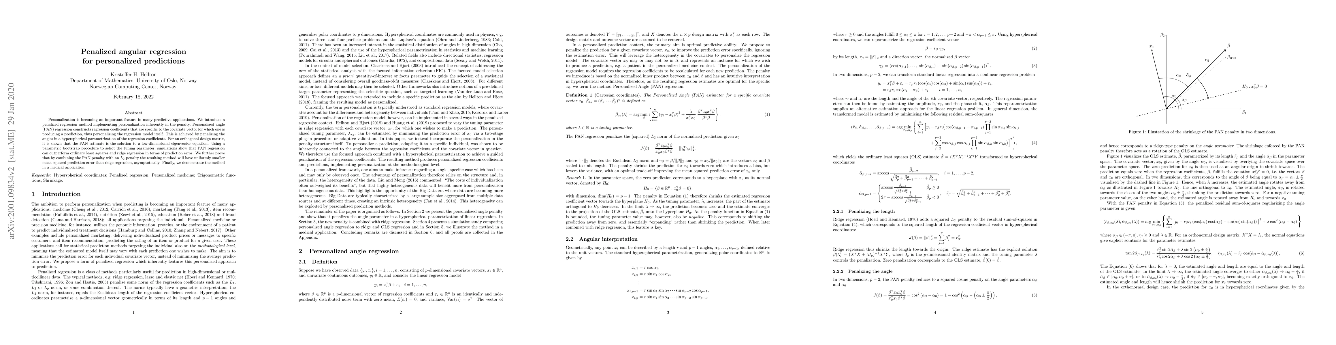 Personalization is becoming an important feature in many predictive applications. We introduce a penalized regression method implementing personalization inherently in the penalty. Personalized angle (PAN) regression constructs regression coefficients that are specific to the covariate vector for which one is producing a prediction, thus personalizing the regression model itself. This is achieved by penalizing the angles in a hyperspherical parametrization of the regression coefficients. For an orthogonal design matrix, it is shown that the PAN estimate is the solution to a low-dimensional eigenvector equation. Using a parametric bootstrap procedure to select the tuning parameter, simulations show that PAN regression can outperform ordinary least squares and ridge regression in terms of prediction error. We further prove that by combining the PAN penalty with an $L_{2}$ penalty the resulting method will have uniformly smaller mean squared prediction error than ridge regression, asymptotically. Finally, we demonstrate the method in a medical application.
