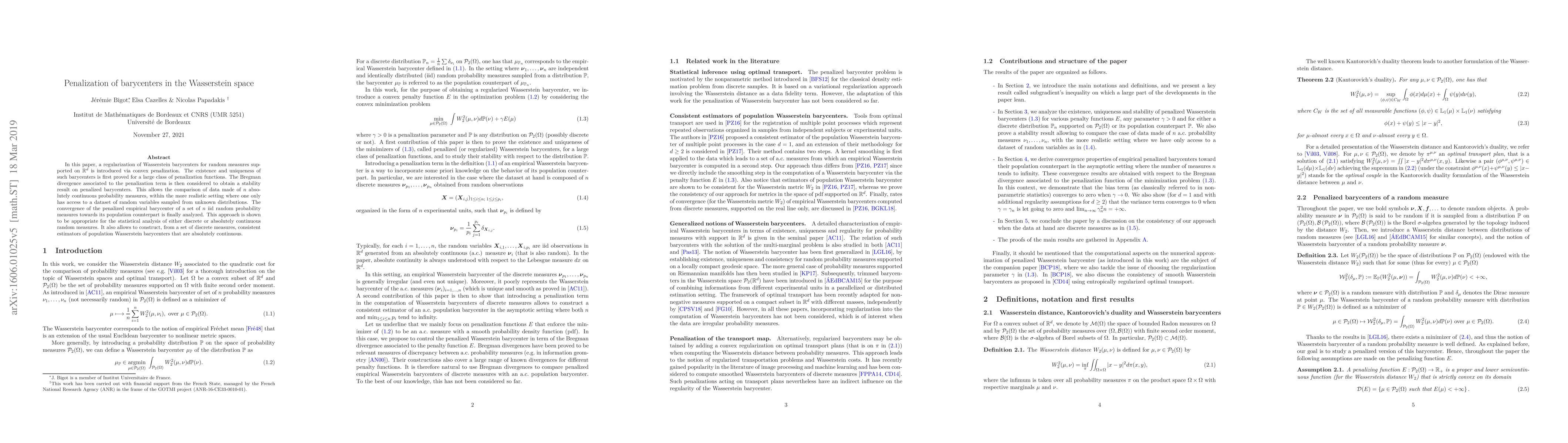 This paper introduces a regularization method for Wasserstein barycenters using convex penalization, proving their existence and uniqueness. It also analyzes the convergence of penalized empirical barycenters and provides stability results, enabling the comparison of data from unknown distributions through sampling.