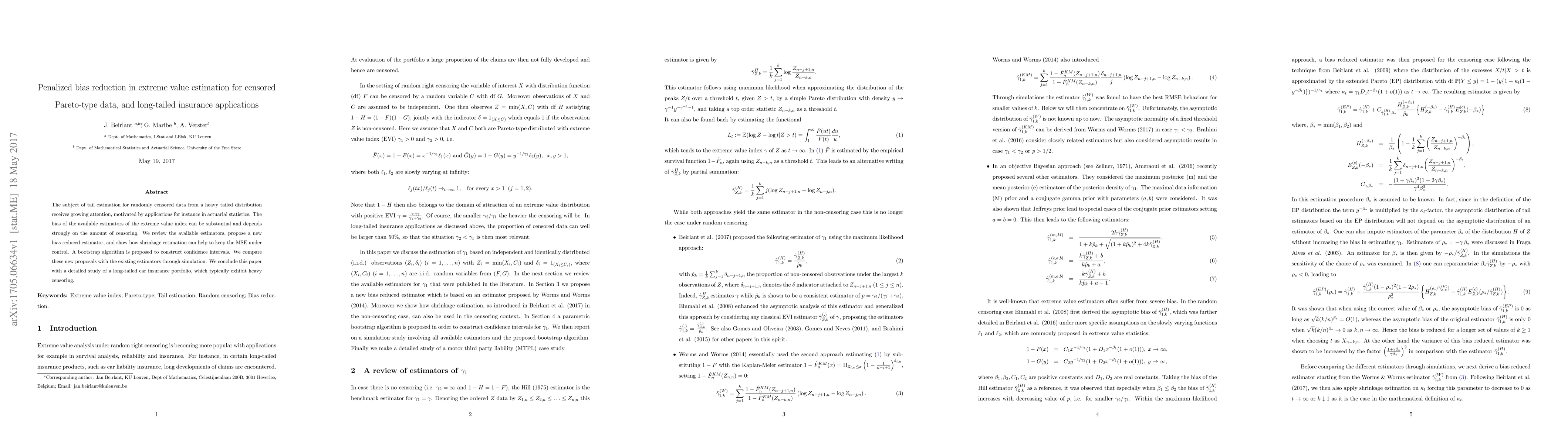The subject of tail estimation for randomly censored data from a heavy tailed distribution receives growing attention, motivated by applications for instance in actuarial statistics. The bias of the available estimators of the extreme value index can be substantial and depends strongly on the amount of censoring. We review the available estimators, propose a new bias reduced estimator, and show how shrinkage estimation can help to keep the MSE under control. A bootstrap algorithm is proposed to construct confidence intervals. We compare these new proposals with the existing estimators through simulation. We conclude this paper with a detailed study of a long-tailed car insurance portfolio, which typically exhibit heavy censoring.