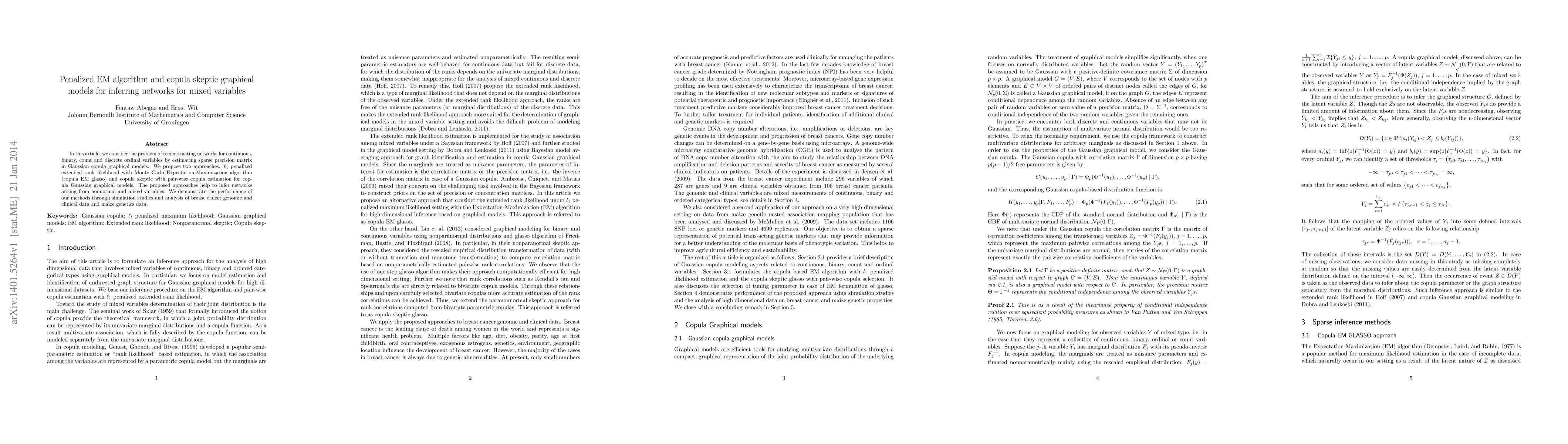 This paper proposes two methods—$\ell_1$ penalized extended rank likelihood with Monte Carlo EM (copula EM glasso) and copula skeptic with pair-wise copula estimation—for inferring networks of mixed variables in Gaussian copula graphical models. The approaches are demonstrated through simulations and analyses of breast cancer and maize genetics data.
