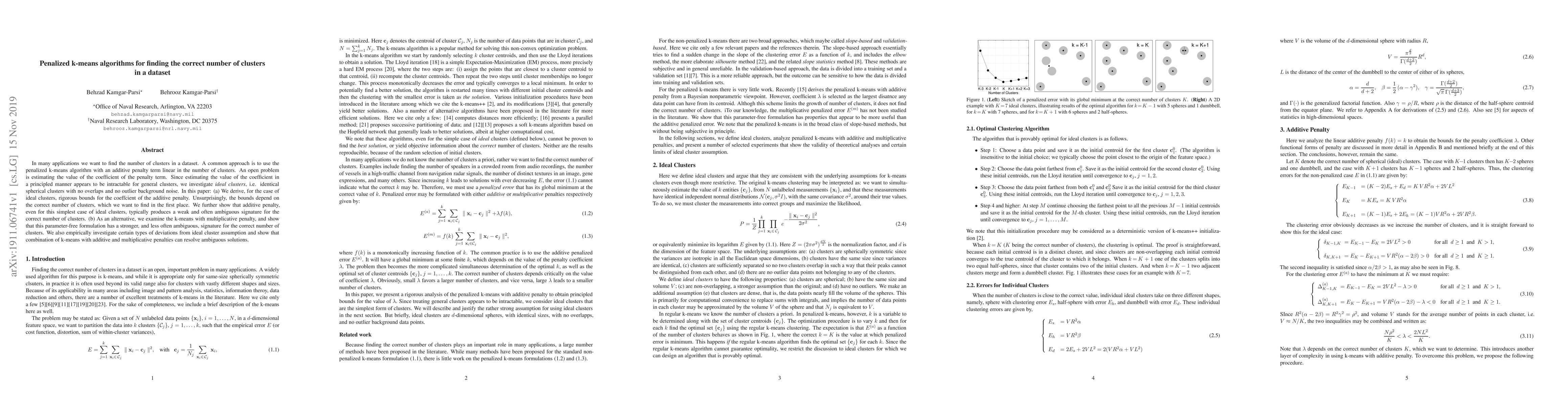 In many applications we want to find the number of clusters in a dataset. A common approach is to use the penalized k-means algorithm with an additive penalty term linear in the number of clusters. An open problem is estimating the value of the coefficient of the penalty term. Since estimating the value of the coefficient in a principled manner appears to be intractable for general clusters, we investigate "ideal clusters", i.e. identical spherical clusters with no overlaps and no outlier background noise. In this paper: (a) We derive, for the case of ideal clusters, rigorous bounds for the coefficient of the additive penalty. Unsurprisingly, the bounds depend on the correct number of clusters, which we want to find in the first place. We further show that additive penalty, even for this simplest case of ideal clusters, typically produces a weak and often ambiguous signature for the correct number of clusters. (b) As an alternative, we examine the k-means with multiplicative penalty, and show that this parameter-free formulation has a stronger, and less often ambiguous, signature for the correct number of clusters. We also empirically investigate certain types of deviations from ideal cluster assumption and show that combination of k-means with additive and multiplicative penalties can resolve ambiguous solutions.