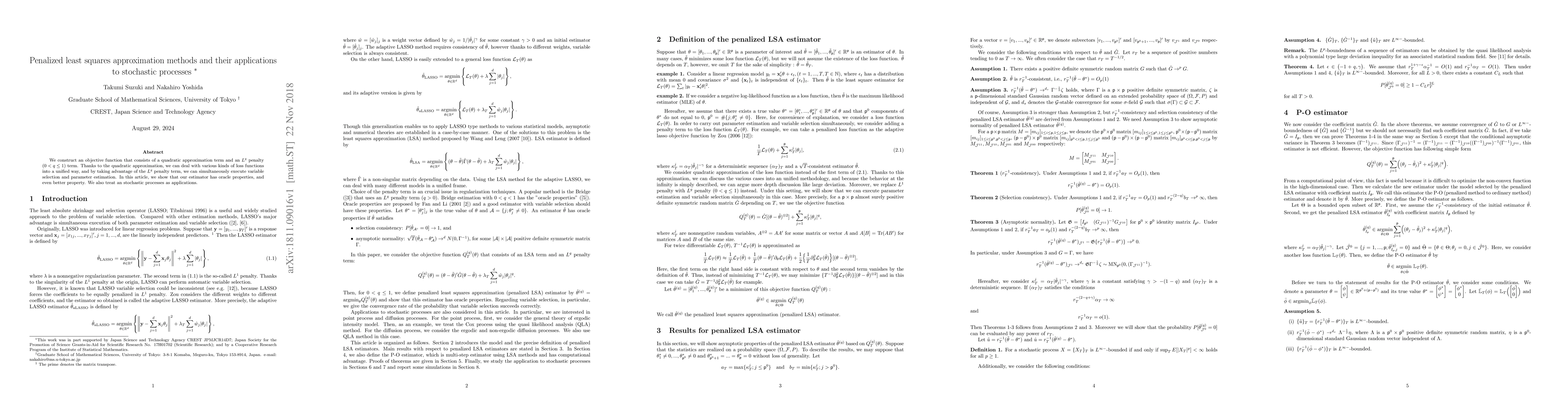 This paper develops penalized least squares methods that combine quadratic approximation and penalty terms for unified loss function handling and simultaneous variable selection and parameter estimation. The proposed estimator demonstrates oracle properties and is applied to stochastic processes.