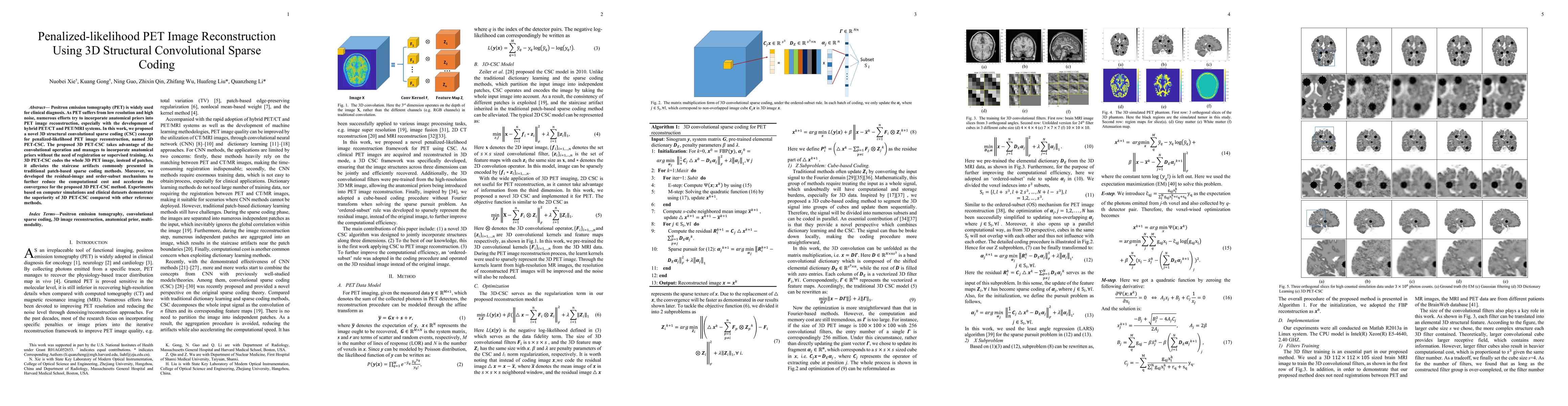 A new 3D convolutional sparse coding method (3D PET-CSC) is proposed for PET image reconstruction, offering superior resolution and reduced artifacts compared to traditional methods.
