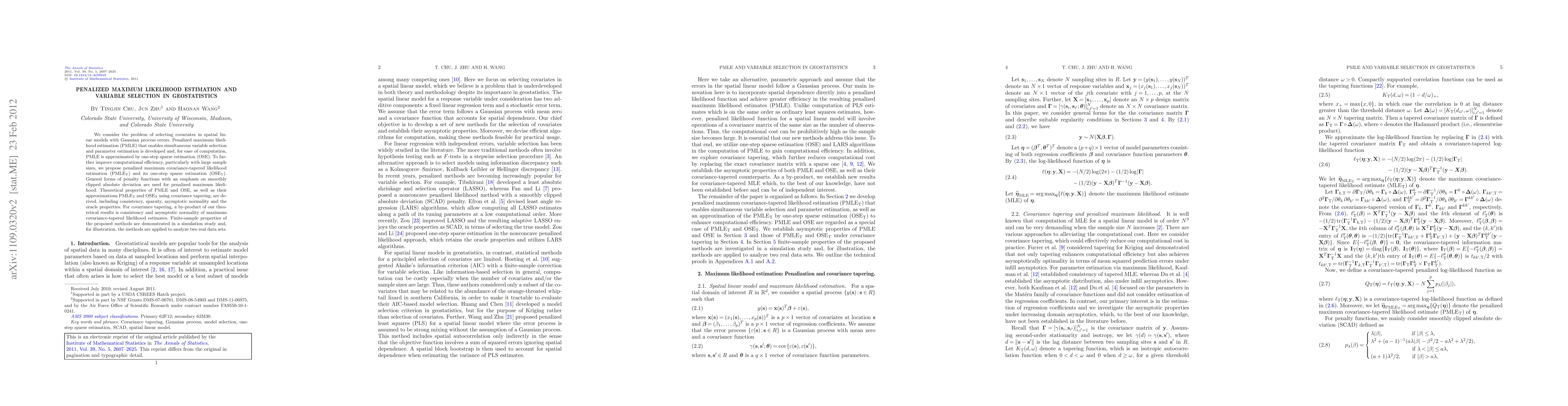 The development of a novel penalized maximum likelihood estimation approach for spatial statistics, which incorporates Lasso regression for variable selection.