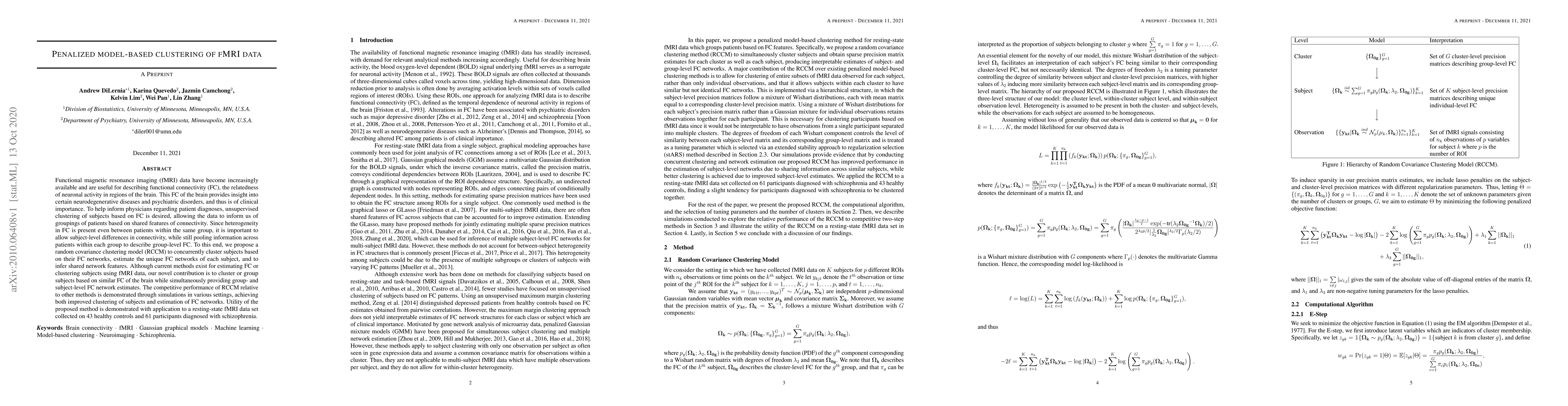 A new clustering method for fMRI data is proposed, allowing for both subject-level and group-level analysis of brain connectivity networks, with improved performance compared to existing methods.