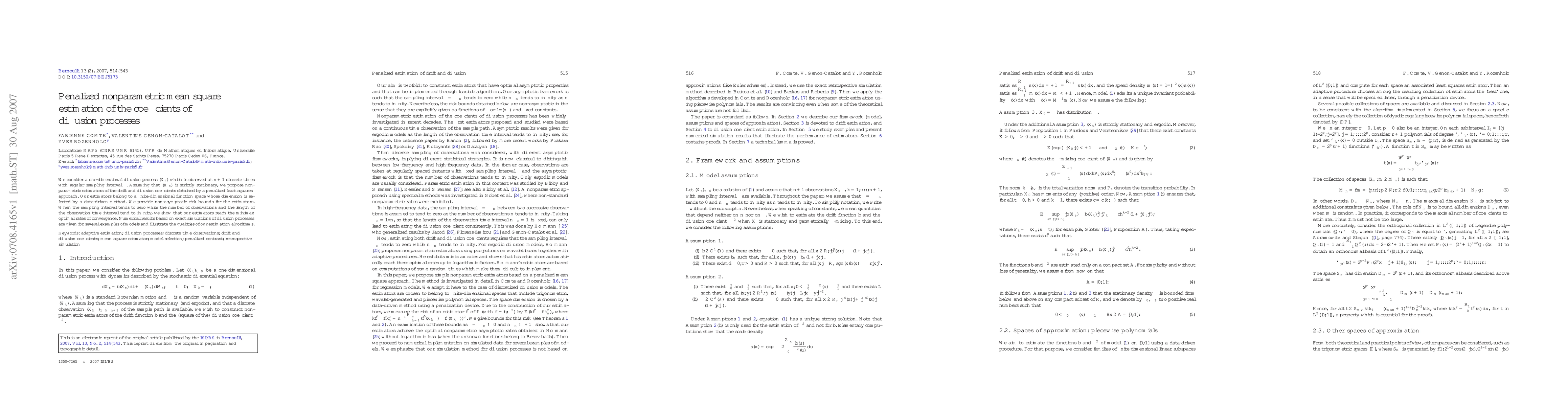 This paper proposes penalized nonparametric estimators for the drift and diffusion coefficients of a one-dimensional diffusion process, using a penalized least squares approach. The authors demonstrate that their estimators achieve minimax optimal convergence rates and provide non-asymptotic risk bounds, supported by numerical simulations.