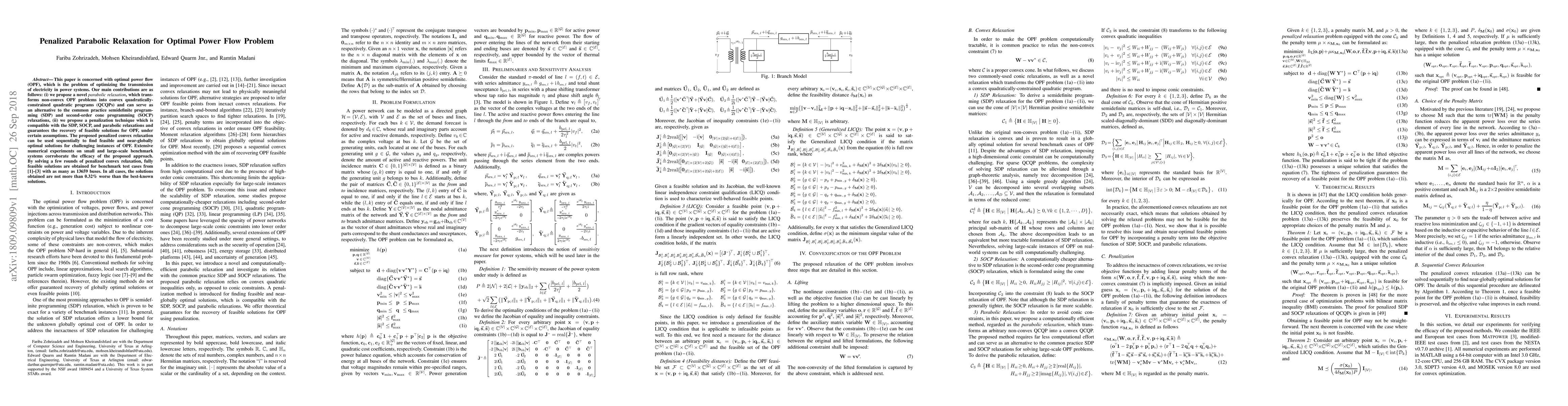 Researchers propose a novel parabolic relaxation method for solving optimal power flow problems, achieving feasible solutions with minimal loss in optimality, and demonstrating its efficacy on small and large-scale benchmark systems.