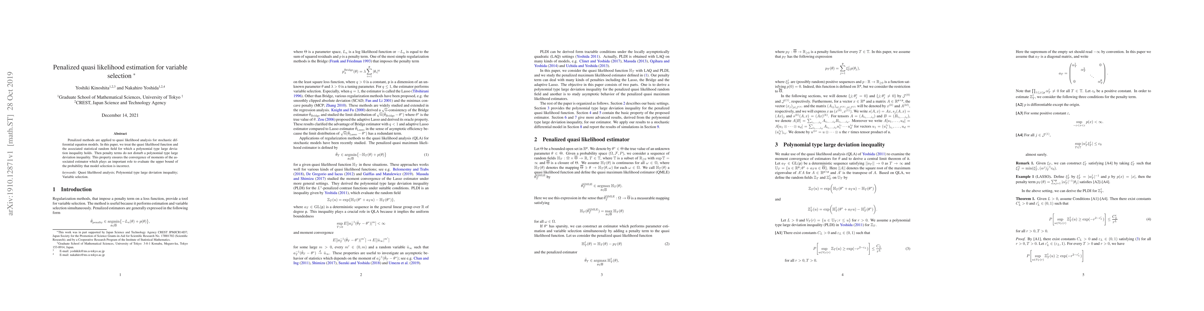 The research uses penalized quasi likelihood estimation for variable selection in stochastic differential equation models.