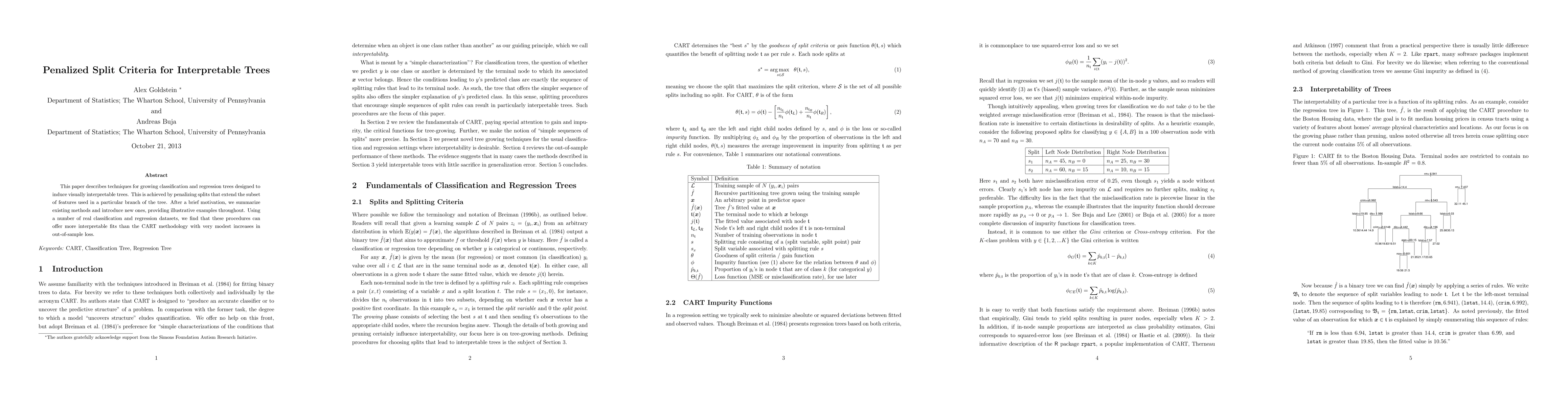 This paper introduces techniques to grow classification and regression trees that produce visually interpretable results by penalizing splits on feature subsets. The methods offer more interpretable fits with modest increases in out-of-sample loss compared to traditional CART methodology.