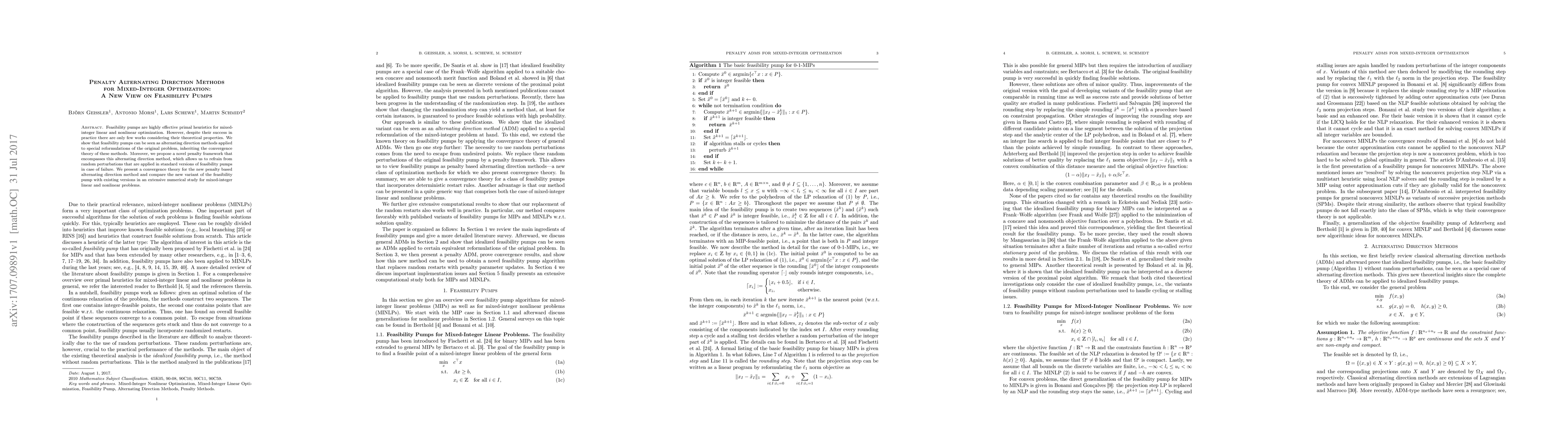 This paper explores a new theoretical perspective on feasibility pumps, revealing their connection to alternating direction methods. It introduces a penalty framework that enhances the method's convergence properties and avoids random perturbations, supported by a convergence theory and numerical comparisons with existing versions.