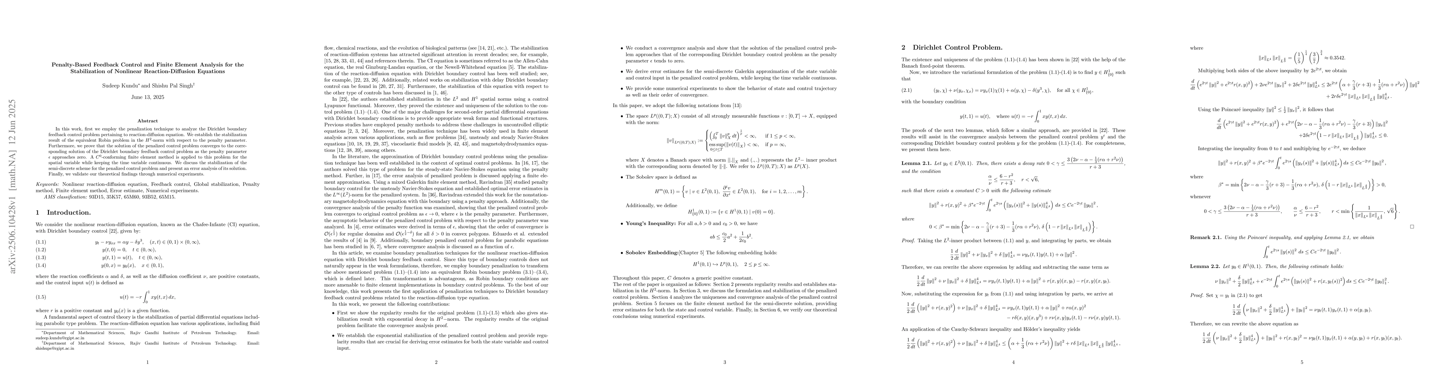 Researchers developed a method to stabilize nonlinear reaction-diffusion equations using penalty-based feedback control and finite element analysis, demonstrating convergence to the optimal solution as the penalty parameter approaches zero.