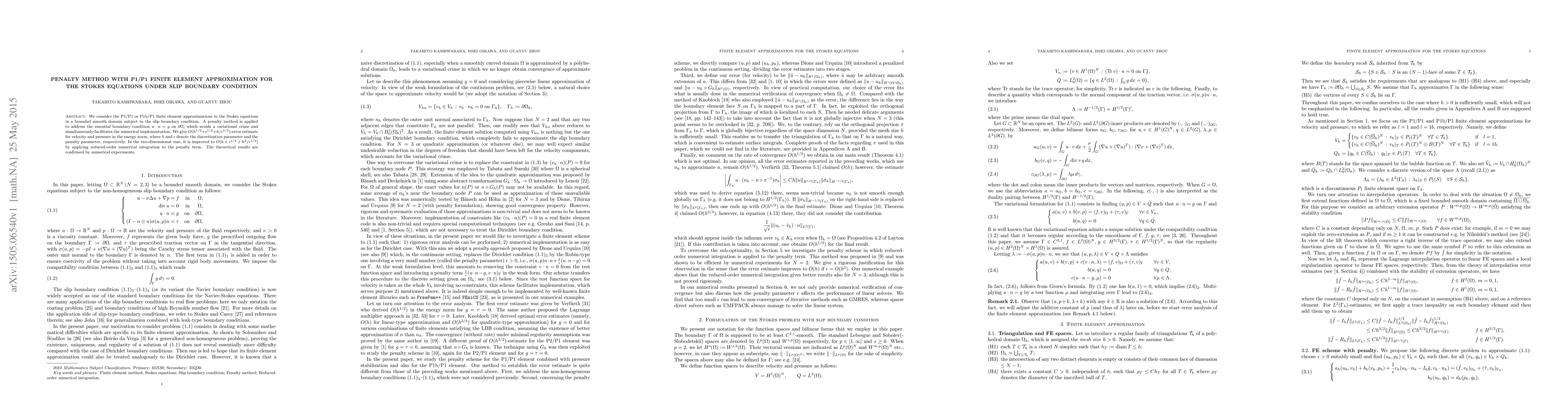 Researchers developed a penalty method for solving the Stokes equations with slip boundary conditions, achieving an O(h + ψ^{1/2} + h^2/ψ^{1/2}) error estimate in 2D, and improved estimates for velocity and pressure in energy norm.