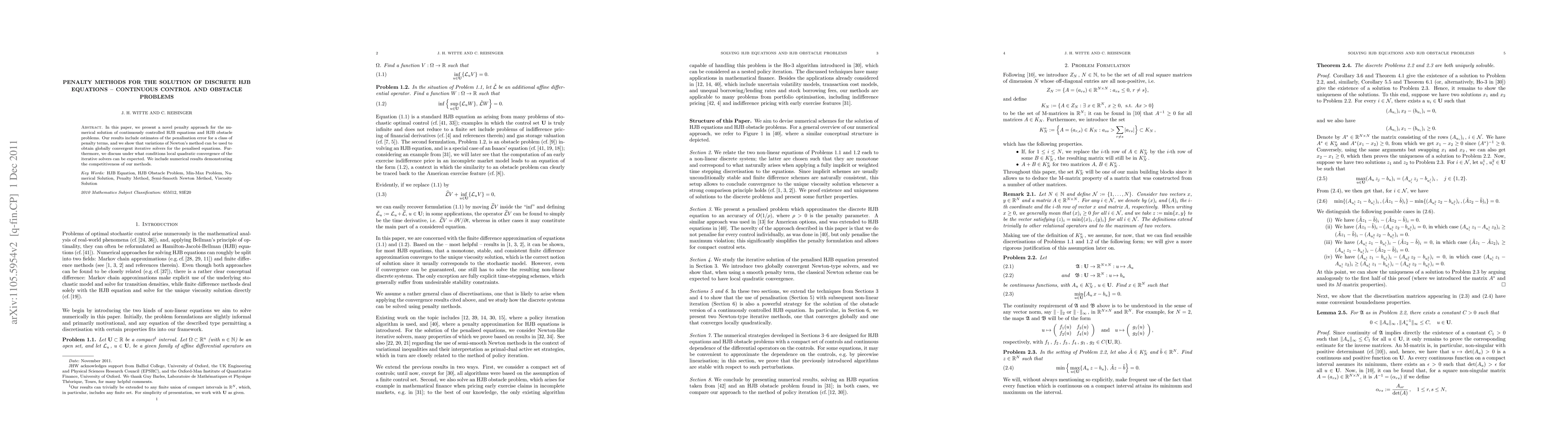 In this paper, we present a novel penalty approach for the numerical solution of continuously controlled HJB equations and HJB obstacle problems. Our results include estimates of the penalisation error for a class of penalty terms, and we show that variations of Newton's method can be used to obtain globally convergent iterative solvers for the penalised equations. Furthermore, we discuss under what conditions local quadratic convergence of the iterative solvers can be expected. We include numerical results demonstrating the competitiveness of our methods.