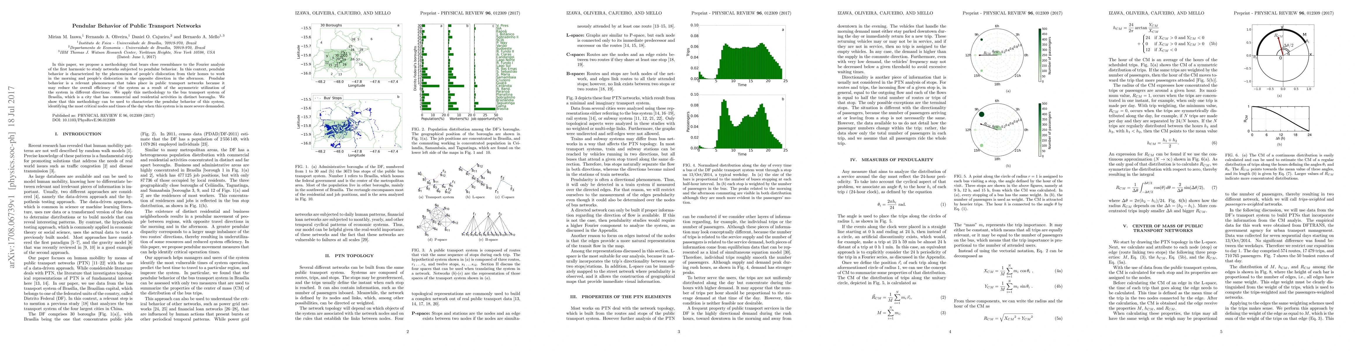 Researchers study pendular behavior in public transport networks, finding critical nodes and peak usage times that reduce efficiency. A methodology inspired by Fourier analysis is applied to the bus transport system of Brasilia, revealing characteristics of this phenomenon.