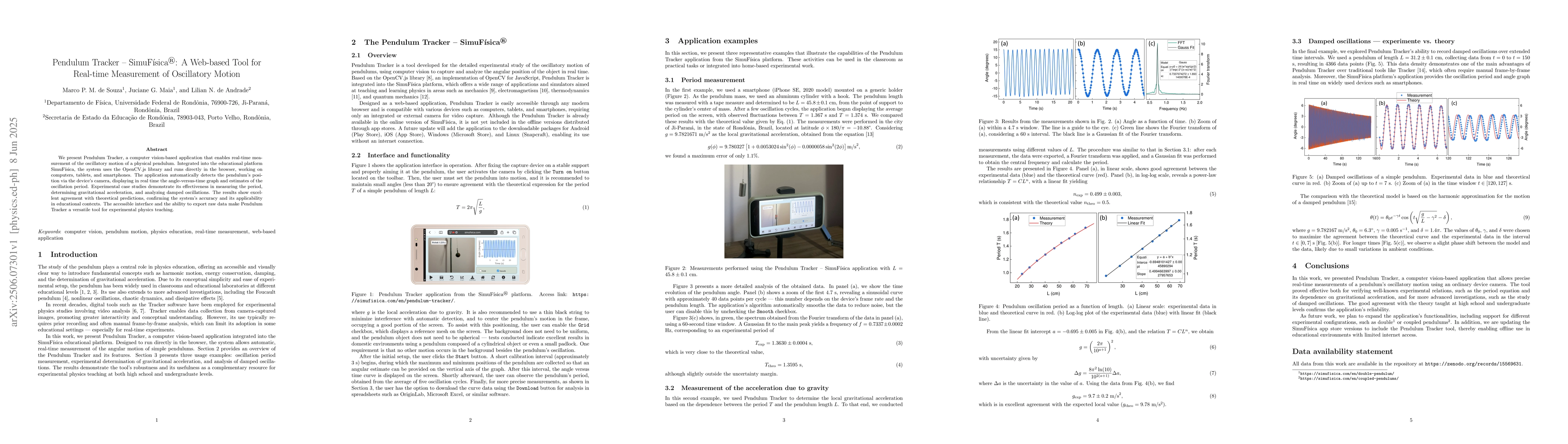 The research introduces Pendulum Tracker, a web-based tool using computer vision to measure pendulum oscillations in real-time. It works on various devices, accurately estimates period, and aids in teaching experimental physics by providing an accessible interface and exportable data.