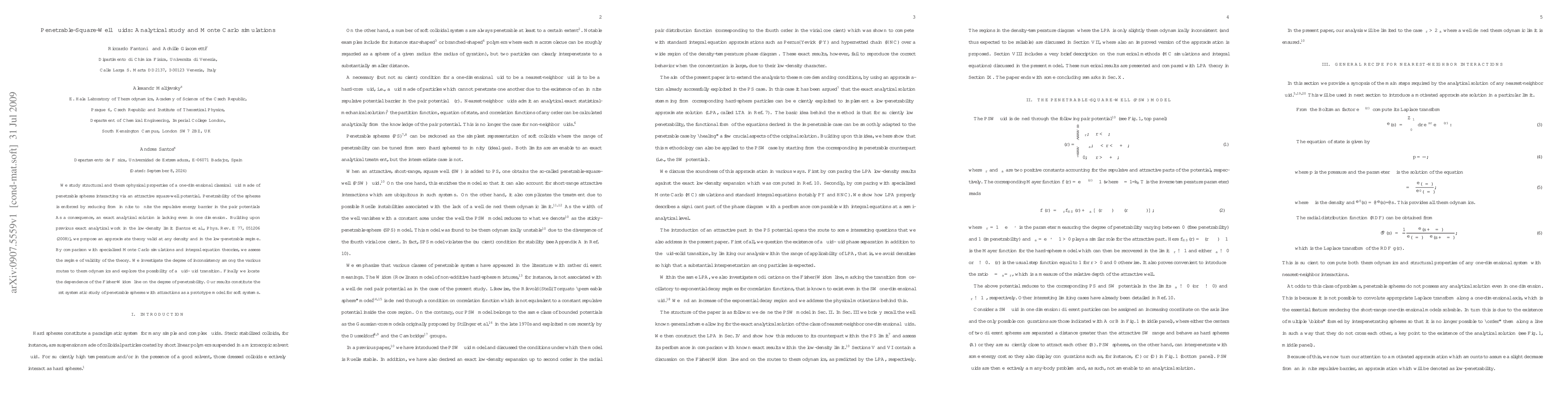 This paper proposes an approximate analytical theory for one-dimensional penetrable-square-well fluids, comparing it with Monte Carlo simulations and integral equation theories to assess its validity. The study explores thermodynamic inconsistencies and the potential for a fluid-fluid transition, marking the first systematic examination of such penetrable sphere models.