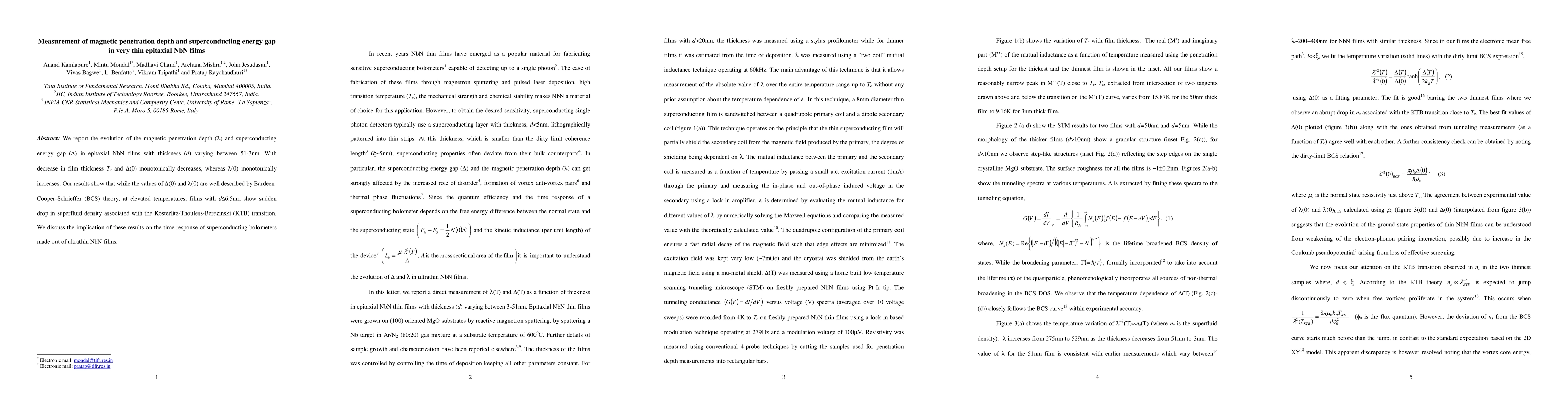 This study investigates the magnetic penetration depth and superconducting energy gap in ultra-thin epitaxial NbN films using mutual inductance and tunneling spectroscopy. The superconducting transition temperature decreases with decreasing film thickness, and while BCS theory fits most films, the thinnest exhibit signs of a KTB transition near Tc.
