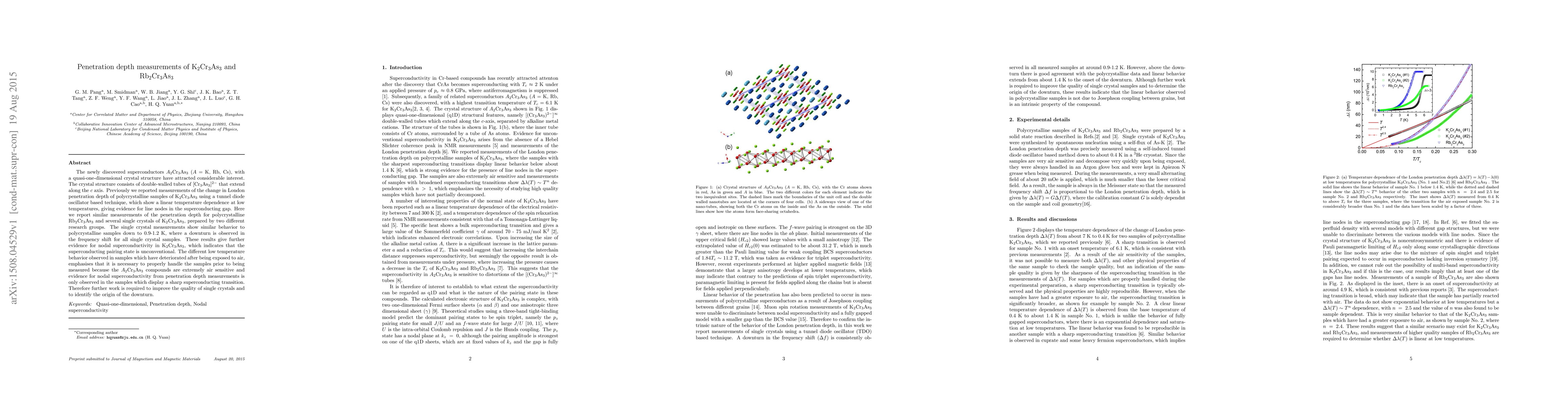 This study investigates the penetration depth of K2Cr3As3 and Rb2Cr3As3 superconductors, revealing nodal superconductivity in K2Cr3As3 through a linear temperature dependence at low temperatures. The observed downturn in frequency shift at very low temperatures suggests further investigation is needed to understand the superconducting pairing state and the impact of sample handling on measurement results.