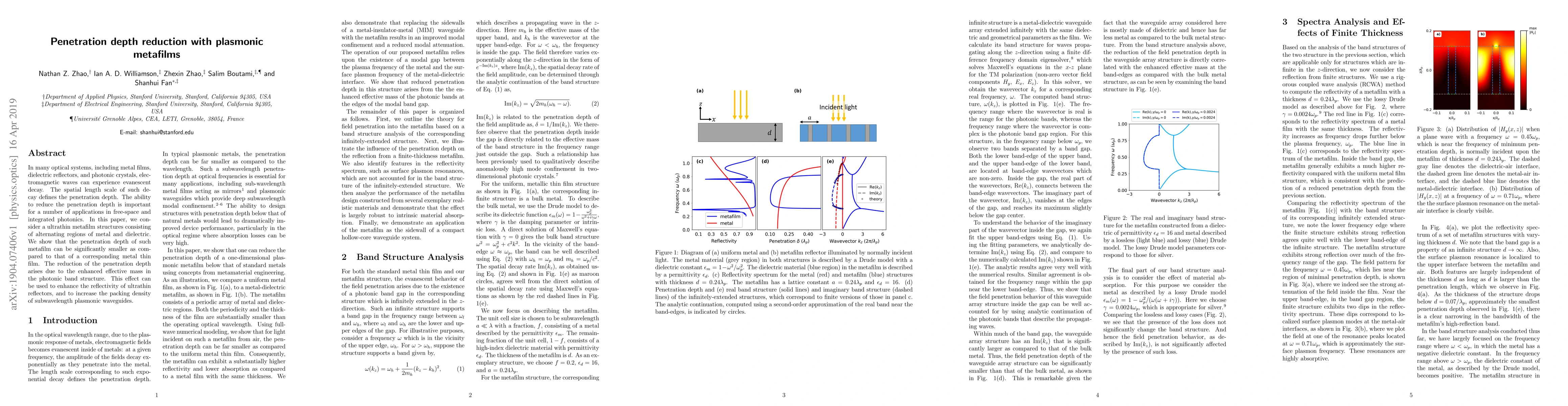 The paper presents a novel approach to reduce penetration depth in optical systems using plasmonic metafilm structures, leveraging enhanced effective mass in the photonic band structure.