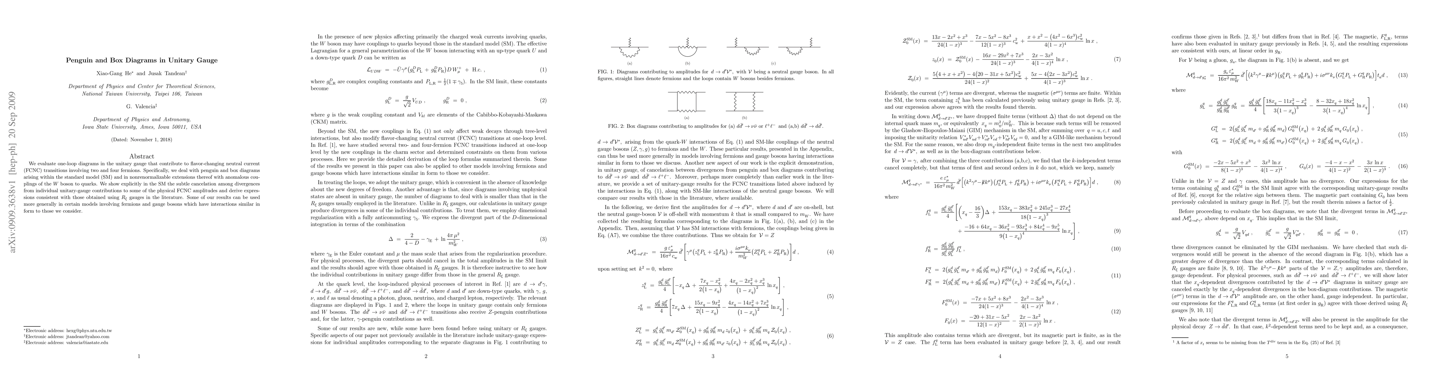 This study evaluates penguin and box diagrams in unitary gauge to calculate flavor-changing neutral current transitions, showing subtle cancellations among divergences and deriving expressions consistent with R_xi gauges.