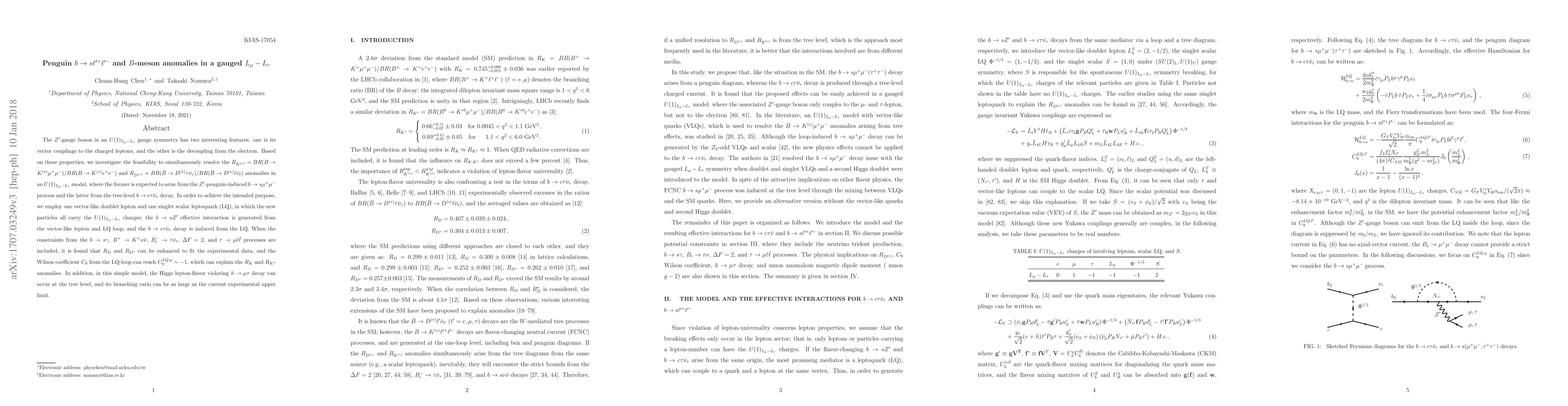 This paper explores how a $Z'$ gauge boson in an $U(1)_{L_\mu-L_\tau}$ model can resolve $B$-meson decay anomalies through penguin-induced $b\to s \mu^+ \mu^-$ and tree-level $b\to c \tau \bar\nu_\tau$ processes, employing vector-like leptons and scalar leptoquarks to achieve this. The model also predicts significant Higgs lepton-flavor violating decay branching ratios.