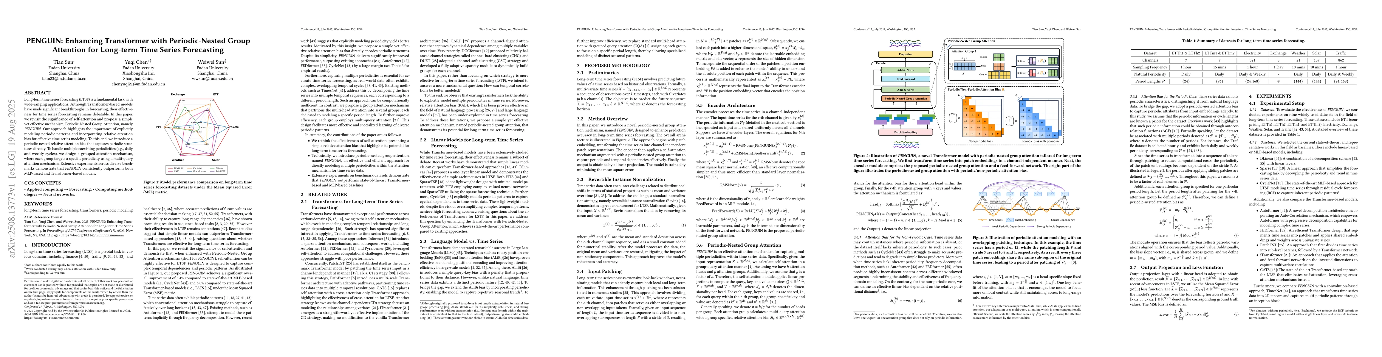 The paper proposes PENGUIN, a Transformer model with Periodic-Nested Group Attention for long-term time series forecasting. It introduces periodic and non-periodic attention biases to capture periodic patterns and relative attention bias effectively.