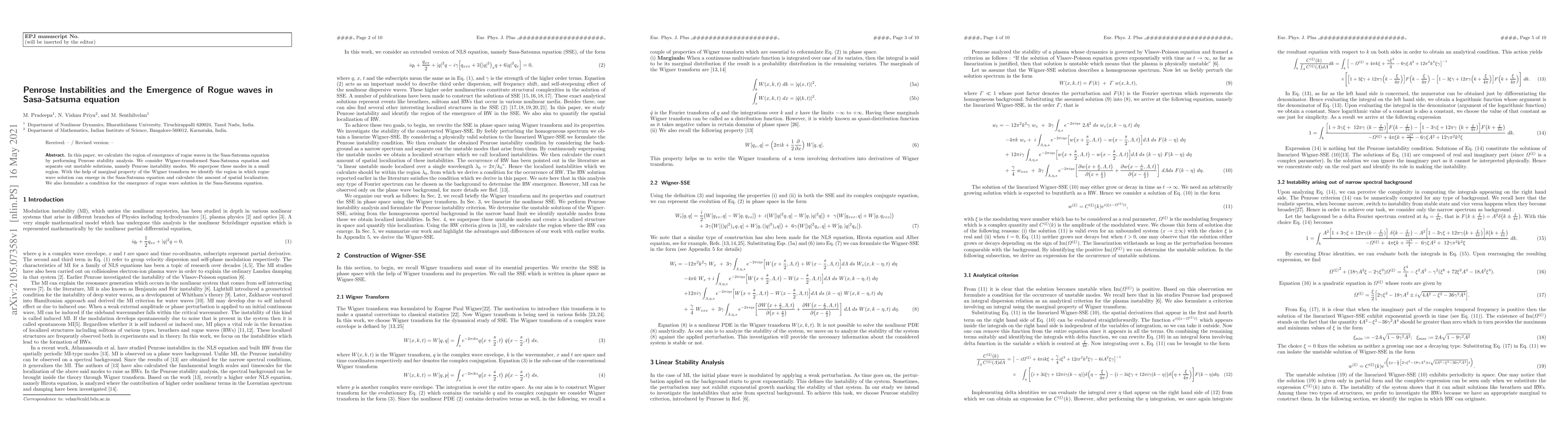 This paper uses Penrose stability analysis to identify the region where rogue waves emerge in the Sasa-Satsuma equation by isolating Penrose instability modes. It calculates the spatial localization of these rogue waves and formulates a condition for their emergence.