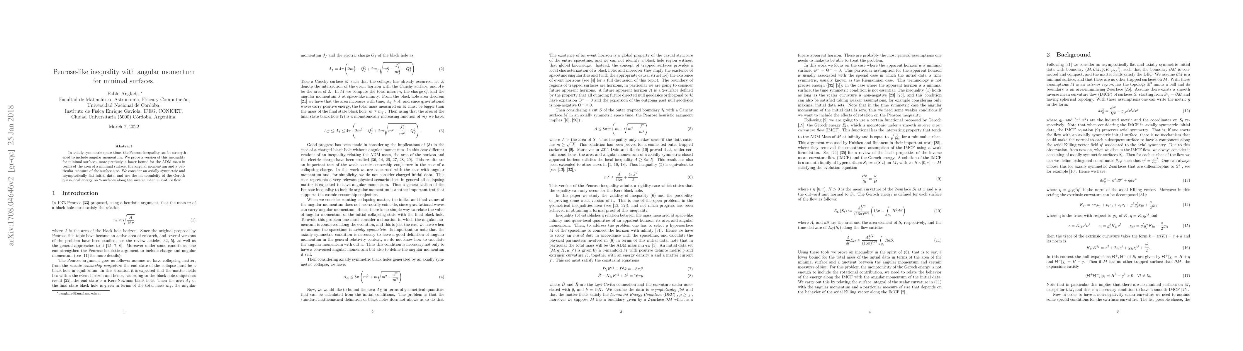 This paper proves a strengthened version of the Penrose inequality for minimal surfaces in axially symmetric, asymptotically flat spacetimes, incorporating angular momentum. The result provides a lower bound for the ADM mass in terms of the area of the minimal surface, the angular momentum, and a measure of the surface size.