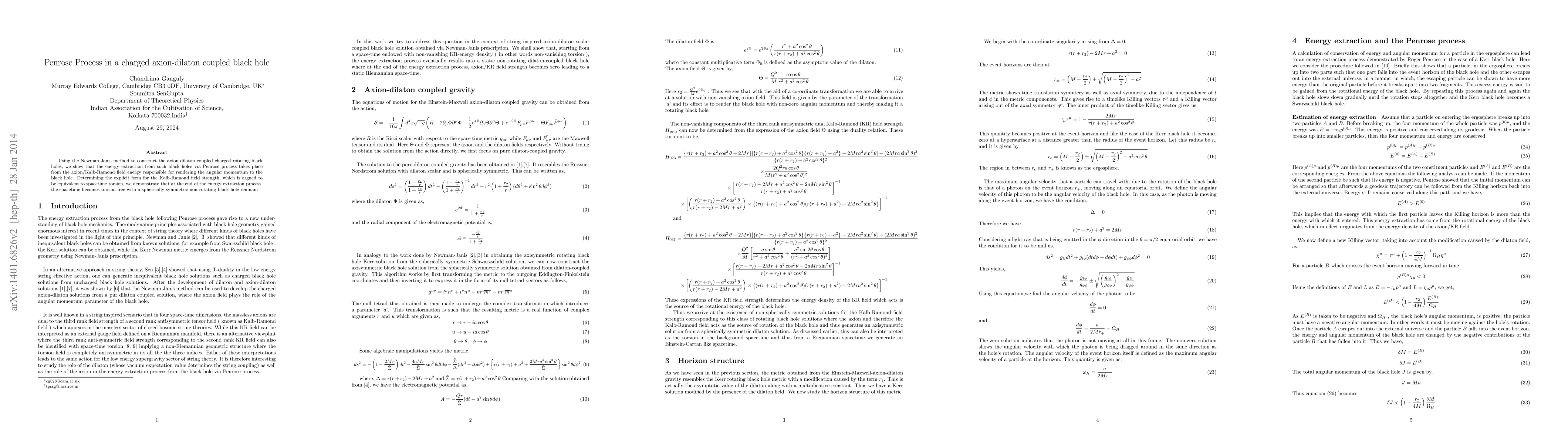 This paper constructs axion-dilaton coupled charged rotating black holes using the Newman-Janis method and demonstrates that the Penrose process extracts energy from the axion/Kalb-Ramond field, ultimately leaving a torsion-free, non-rotating black hole remnant.
