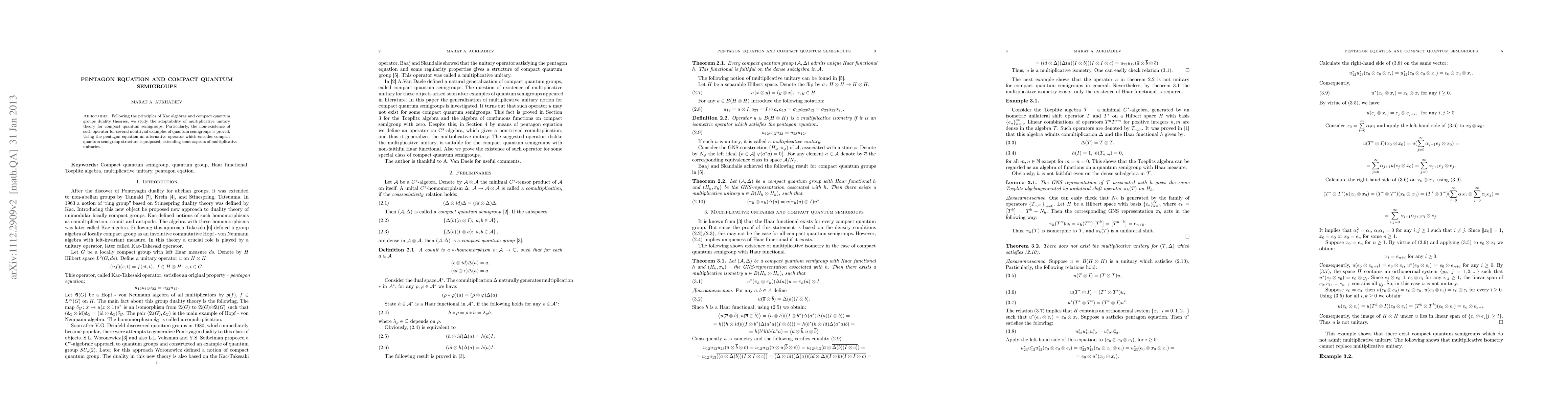 The generalization of multiplicative unitary notion from compact quantum groups to compact quantum semigroups is considered. We show why the same construction doesn't work in this case by giving examples of C*-algebras with non-trivial comultiplication which do not admit multiplicative unitaries. By the use of the pentagon equation we suggest a notion of an operator which gives comultiplication on any C*-algebra. The multiplicative unitary turns out to be its special case. We prove for some compact quantum semigroups that the comultiplication is given by such operator.