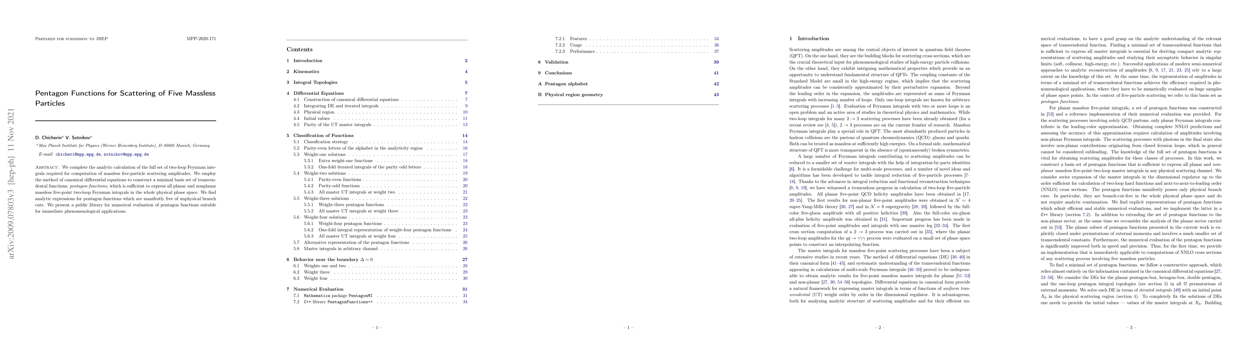 This research completes the analytic calculation of Feynman integrals for massless five-particle scattering, introducing 'pentagon functions' as a minimal basis set. These functions are analytically expressed, free of branch cuts, and are accompanied by a public library for numerical evaluation, facilitating immediate phenomenological applications.