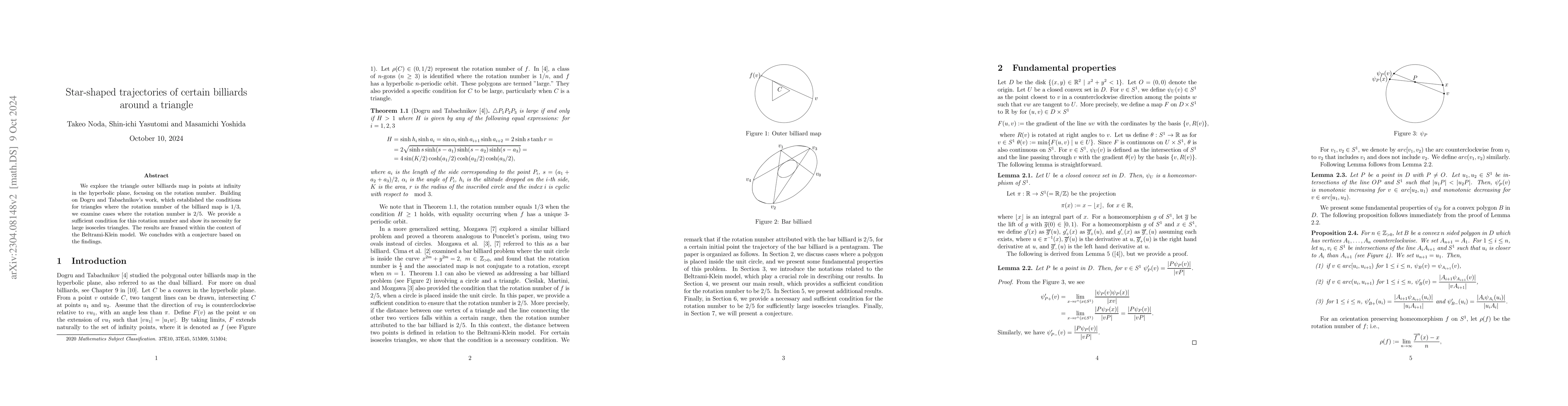 This paper investigates the bar billiards dynamics within a triangle inscribed in a unit circle, focusing on trajectories that form a pentagram. It establishes conditions under which the rotation number of the corresponding map equals $\frac{2}{5}$.