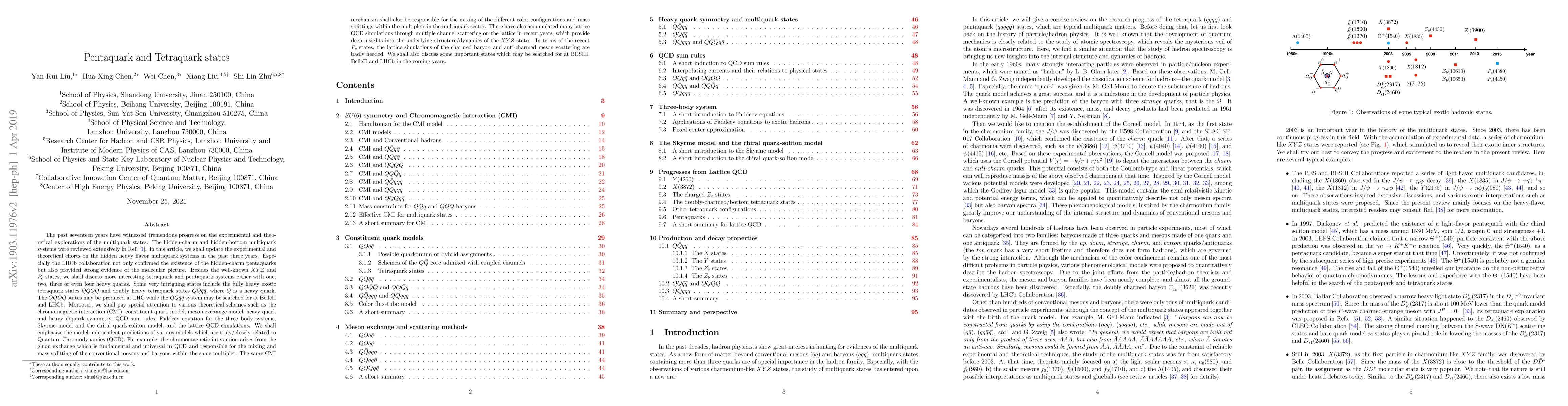 The past seventeen years have witnessed tremendous progress on the experimental and theoretical explorations of the multiquark states. The hidden-charm and hidden-bottom multiquark systems were reviewed extensively in [Phys. Rept. 639 (2016) 1-121]. In this article, we shall update the experimental and theoretical efforts on the hidden heavy flavor multiquark systems in the past three years. Especially the LHCb collaboration not only confirmed the existence of the hidden-charm pentaquarks but also provided strong evidence of the molecular picture. Besides the well-known $XYZ$ and $P_c$ states, we shall discuss more interesting tetraquark and pentaquark systems either with one, two, three or even four heavy quarks. Some very intriguing states include the fully heavy exotic tetraquark states $QQ\bar Q\bar Q$ and doubly heavy tetraquark states $QQ\bar q \bar q$, where $Q$ is a heavy quark. The $QQ\bar Q\bar Q$ states may be produced at LHC while the $QQ\bar q \bar q$ system may be searched for at BelleII and LHCb. Moreover, we shall pay special attention to various theoretical schemes. We shall emphasize the model-independent predictions of various models which are truly/closely related to Quantum Chromodynamics (QCD). There have also accumulated many lattice QCD simulations through multiple channel scattering on the lattice in recent years, which provide deep insights into the underlying structure/dynamics of the $XYZ$ states. In terms of the recent $P_c$ states, the lattice simulations of the charmed baryon and anti-charmed meson scattering are badly needed. We shall also discuss some important states which may be searched for at BESIII, BelleII and LHCb in the coming years.